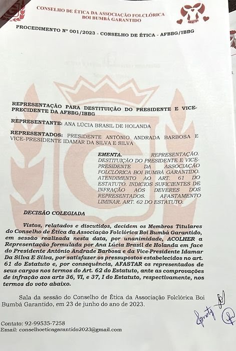 Amazonas – Uma bomba acaba de abalar os preparativos para o tão aguardado 56° Festival Folclórico de Parintins! O presidente do boi Garantido, Antônio Andrade, foi abruptamente sacado de seu mandato pelo conselho de ética da agremiação, em uma reviravolta chocante que ocorreu na noite de sexta-feira (23)