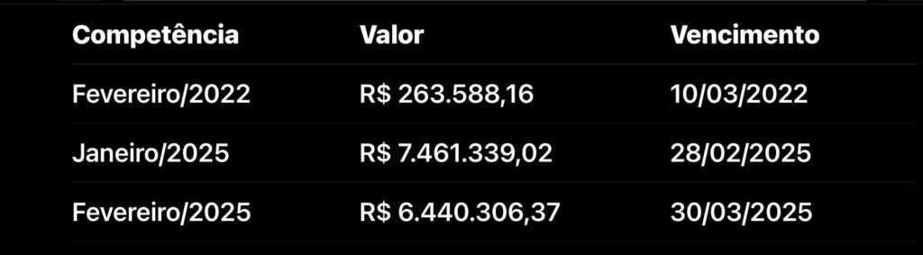 A dívida milionária refere-se a faturas vencidas desde fevereiro de 2022, incluindo sete meses de inadimplência somente em 2025. A Hapvida informa que, caso o pagamento não ocorra em até 5 dias úteis, haverá suspensão imediata dos atendimentos eletivos.