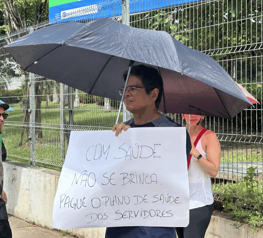 “Com saúde não se brinca. Pague o plano de saúde dos servidores!” e “O que fizeram com o dinheiro dos dependentes?” eram algumas das frases escritas nos cartazes erguidos pelos manifestantes.