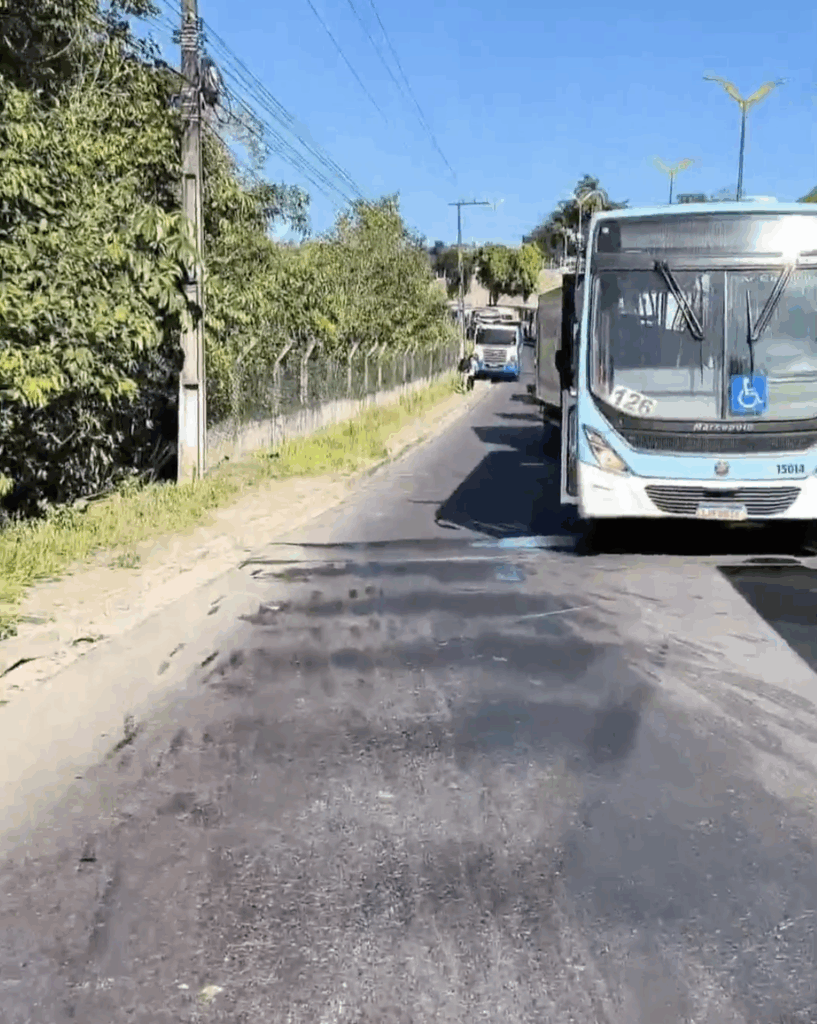 Na avenida, foi identificado vestígios de óleo na pista, possivelmente saindo de um ônibus que está parado no local.
