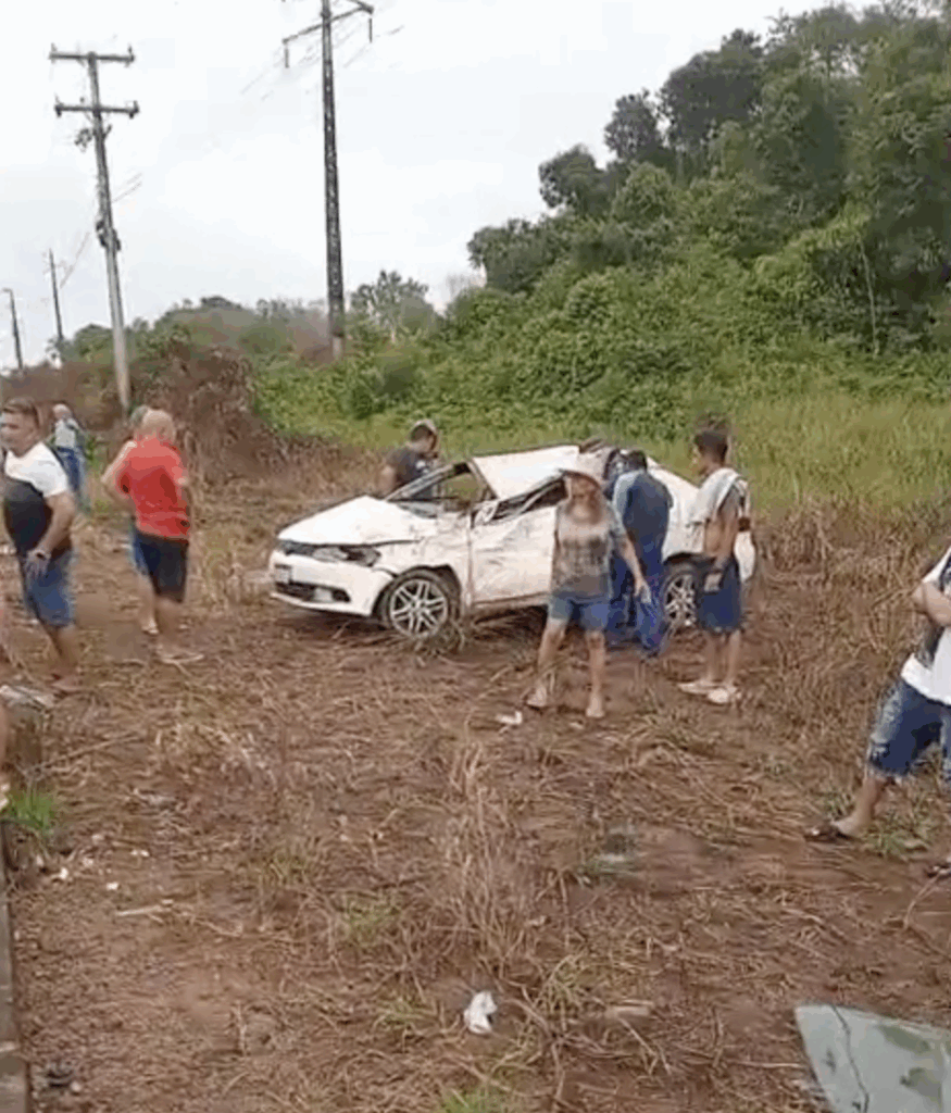 Segundo informações preliminares, a família viajava em um veículo branco quando o motorista perdeu o controle da direção, fazendo o carro capotar mais de quatro vezes na estrada. A força do impacto deixou o automóvel completamente destruído, configurando perda total. Dentro do carro estavam cinco pessoas: um homem, sua esposa, um adolescente e duas crianças.