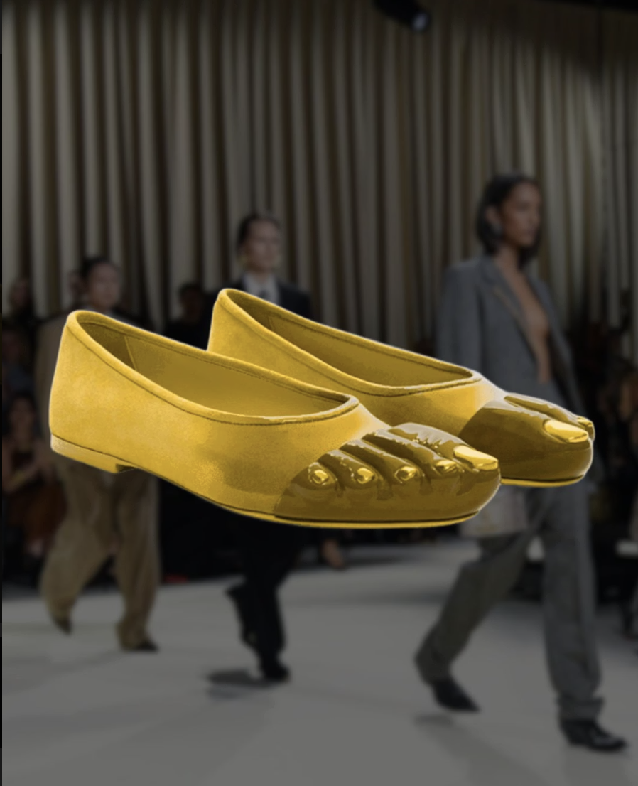 Marcas como Balenciaga e Commes des Garçons também exploraram essa estética em lançamentos nos últimos anos.Outro exemplo, desta vez mais moderno, é o V-Soul, calçado da marca Vibram que foi o quinto produto de moda mais prestigiado no segundo trimestre de 2025, de acordo com a Lyst Index.