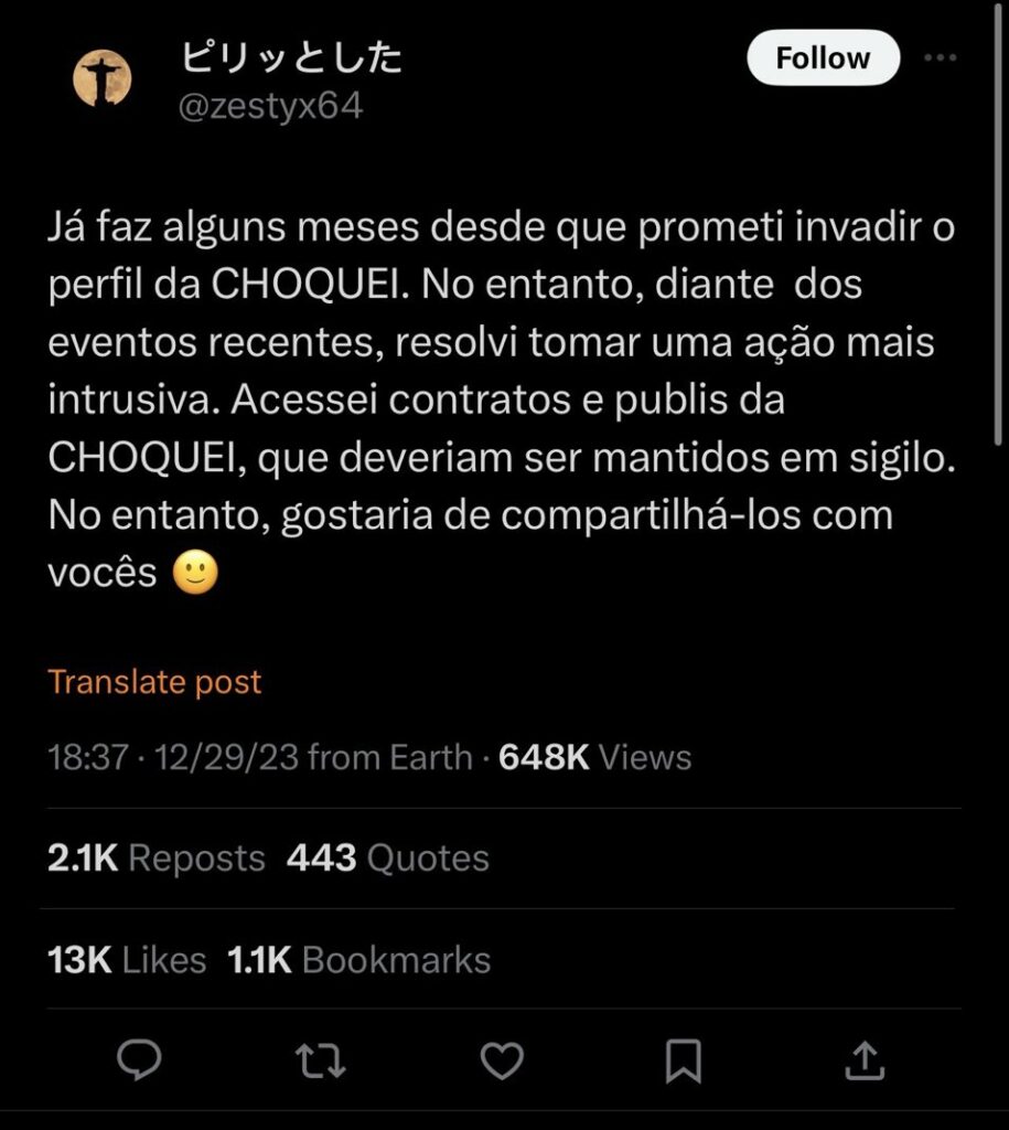 Brasil – Nesta quinta-feira (4), o hacker @zestyx64 vazou no X (antigo Twitter) 251 contratos da empresa Mynd8 com Páginas de Fofoca pertencentes à Bancada Digital. Um dos documentos vazados contraria a declaração da Agência Digital feita em nota oficial, de que não teriam nenhuma relação recente com a página Choquei.