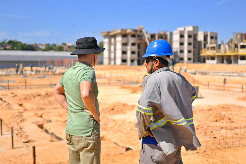 Manaus – O prefeito de Manaus, David Almeida, fiscalizou, na manhã desta terça-feira, 5/8, o andamento das obras do conjunto habitacional que está sendo erguido próximo da avenida do Turismo, na zona Oeste da capital. O empreendimento vai contemplar 576 famílias. Com a intensificação do verão amazônico, a obra está avançando na construção dos três edifícios, no estágio de terraplanagem e alcançando os 20% de andamento.