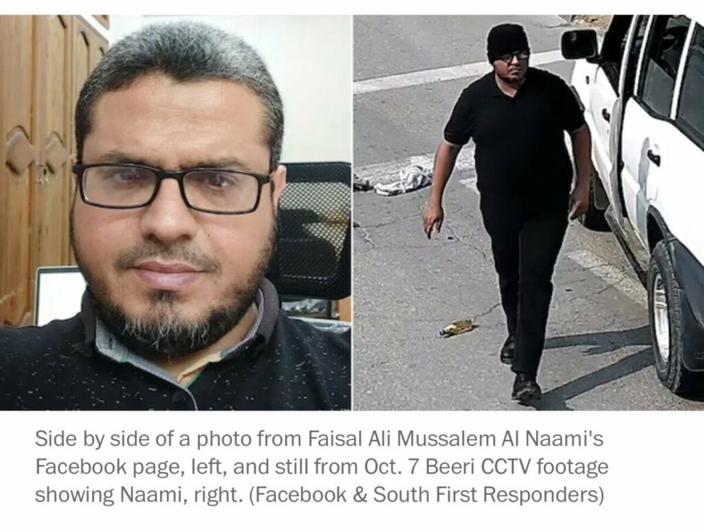 O indivíduo identificado como colaborador da ONU é Faisal Ali Mussalem Al Naami, que figura nas filmagens vestindo preto. Notavelmente, Al Naami, funcionário da agência de assistência e obras das Nações Unidas para os refugiados palestinos no Oriente Próximo (UNRWA), desempenhava o papel de assistente social.