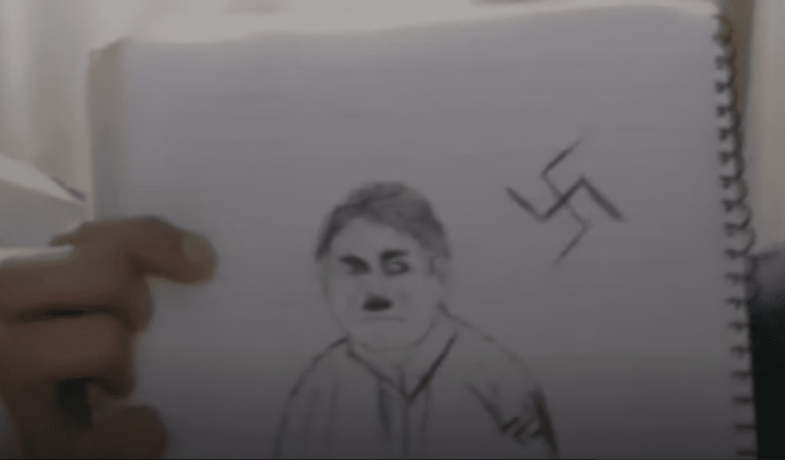 Uma suástica nazista foi desenhada com poeira no violão de um dos adolescentes: