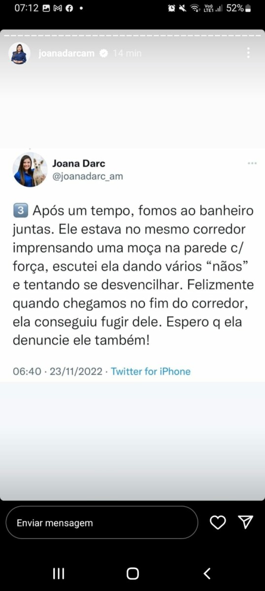 Manaus – Na noite desta terça-feira (22) a deputada estadual Joana Darc (União Brasil), foi agredida dentro de um restaurante localizado no bairro Vieiralves, zona sul de Manaus, ao tentar defender uma amiga de um importunador.
