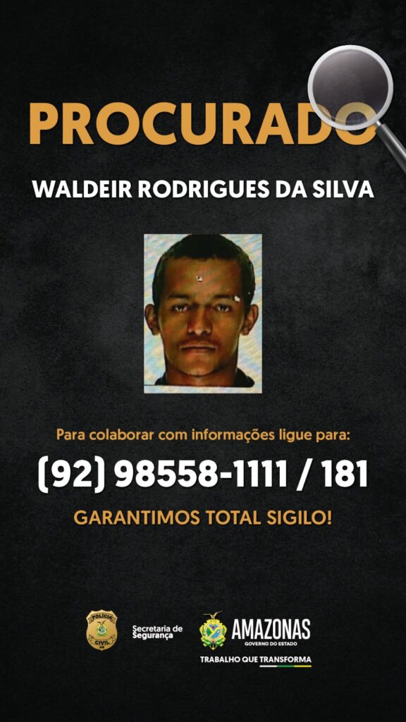 A PC-AM solicita a quem tiver informações sobre o paradeiro de Waldeir Rodrigues da Silva, que entre em contato pelos números (92) 98558-1111, do 11º DIP, ou pelo 181, da Secretaria de Segurança Pública do Amazonas (SSP-AM). “A identidade do informante ficará em sigilo”, finalizou o delegado.