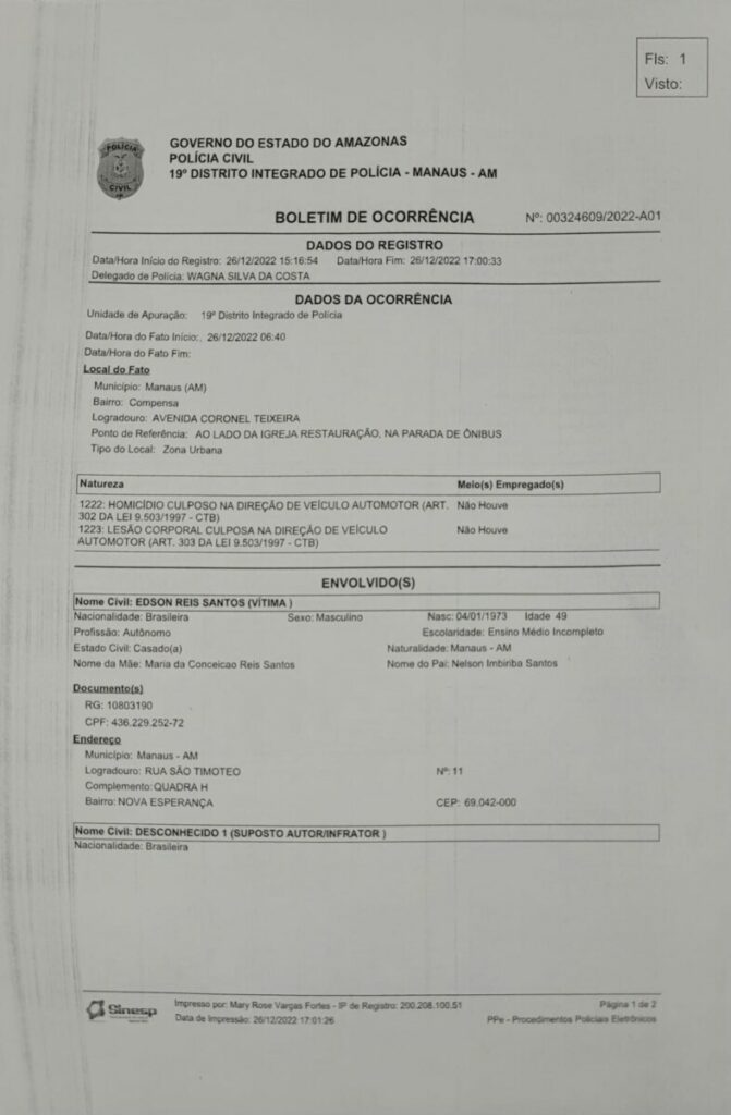 Motorista que m4tou trabalhadora e fugiu já teve carro identificado em Manaus