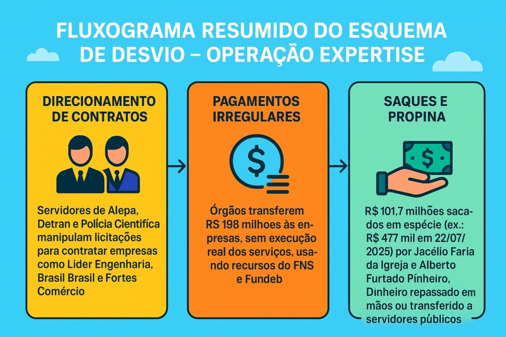 Brasil – A Polícia Federal (PF) investiga um esquema milionário de desvio de recursos públicos da Saúde e da Educação no Pará que movimentou R$ 198 milhões entre 2018 e 2025. Somente em saques em espécie, foram retirados R$ 101,7 milhões por pessoas ligadas a empresas suspeitas de pagar propina a servidores públicos. A operação, batizada de Expertise, foi deflagrada nesta semana e já levou à prisão preventiva de cinco envolvidos.