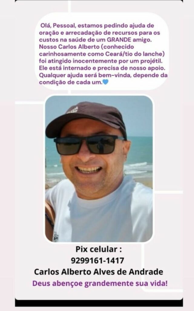 Agora os familiares pedem ajuda para arcar com as despesas do hospitais onde o trabalhador, identificado como Carlos Alberto, mais conhecido como “Tio do Lanche”, está internada em estado grave.