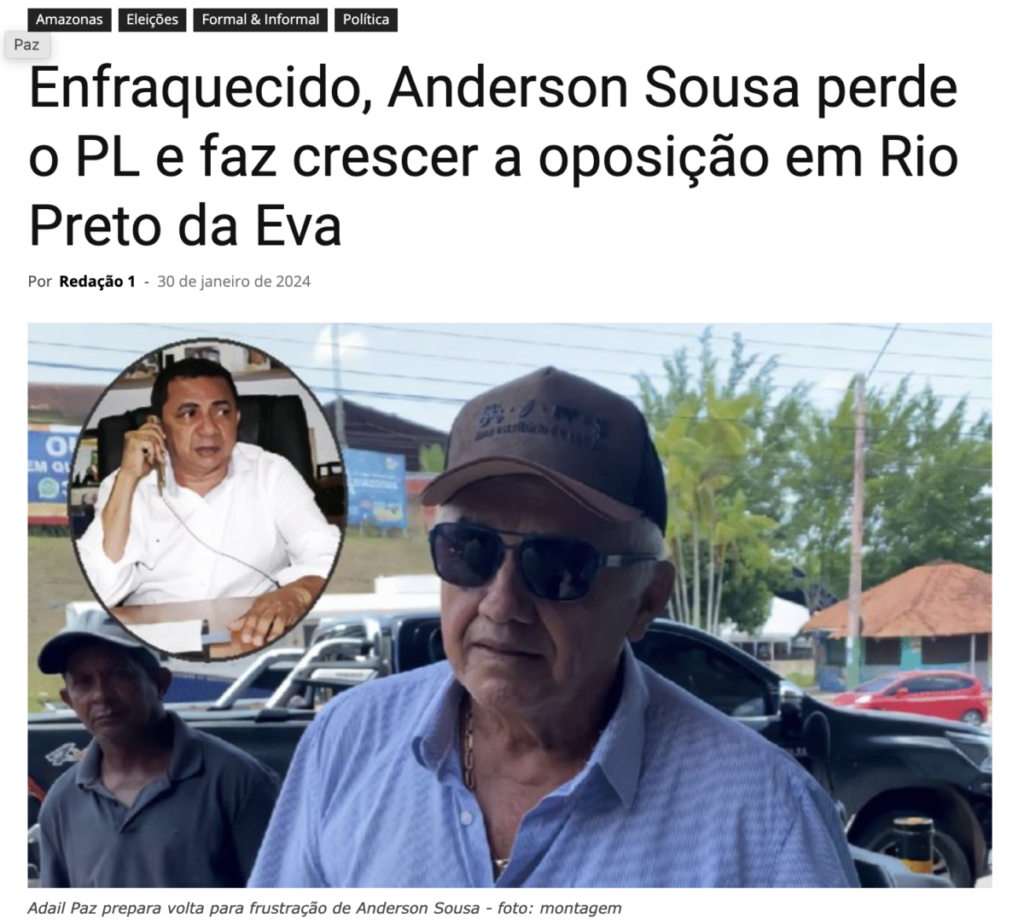 Além disso, Anderson Sousa tenta associar a figura de Adail Paz à direita política e ao Partido Liberal (PL), o que está longe da realidade. Adail é tudo, menos de direita. O ex-prefeito inclusive tem ligações com velhos políticos do Estado do Amazonas, ligados ao MDB e PSD, e também apoiou a decisão , quando este apoiou a eleição presidencial de Lula (PT), em 2022.
