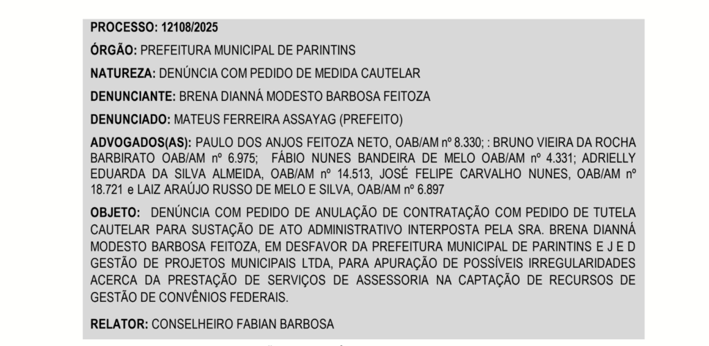A decisão cautelar foi publicada nesta semana e atinge diretamente o prefeito Mateus Ferreira Assayag, responsável pela assinatura do contrato agora sob investigação.