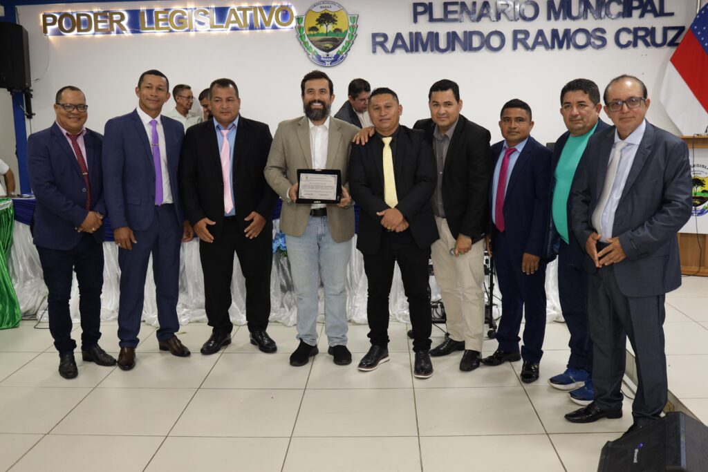 Amazonas – Reconhecimento e trabalho humanitário marcaram a agenda do deputado estadual Dr. George Lins (União Brasil) em Maraã. Na última quinta-feira (04/09), ele foi homenageado pela Câmara Municipal com o título de Cidadão Maraãense, em solenidade que reuniu lideranças políticas, entre elas o prefeito Edir Castelo Branco, o vice-prefeito Chico da Ceam, vereadores e seu pai, o ex-deputado Belarmino Lins.
