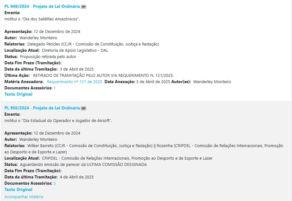 O deputado recebe salário bruto de R$ 46 mil, com líquido mensal de R$ 27.369,50, valor que não inclui os recursos do chamado “cotão” parlamentar. Ex-vereador e eleito em 2022 com 17.787 votos (0,90%), Monteiro ocupa uma das 24 cadeiras da Aleam.