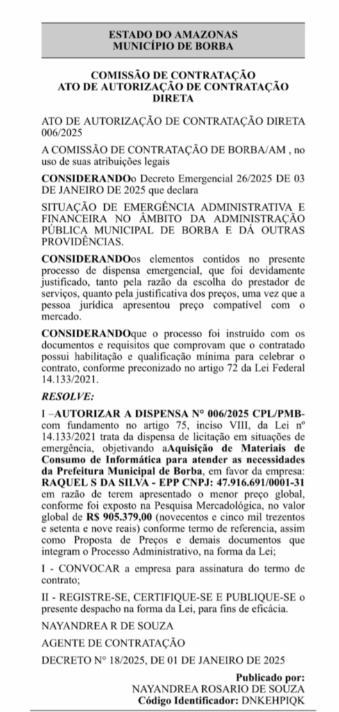 Amazonas – O prefeito de Borba, cidade do interior do Amazonas, Raimundo Santana de Freitas, o Toco Santana, volta a ser personagem central de uma nova denúncia que levanta sérias dúvidas sobre a lisura de sua gestão.