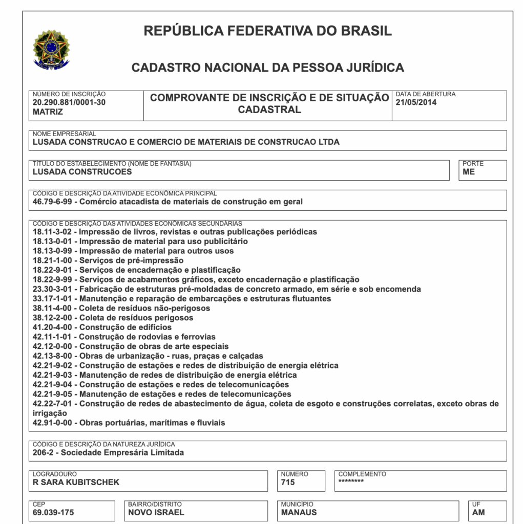 A empresa Lusada Construção e Comércio de Materiais de Construção Ltda, inscrita no CNPJ 20.290.881/0001-30, foi a escolhida como vencedora da Concorrência Pública Eletrônica nº 001/2025, conforme publicação no Diário Oficial dos Municípios do Estado do Amazonas do dia 21 de julho de 2025.