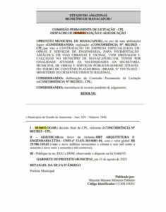 O contrato, vencido pela empresa na Concorrência n° 002/2023, abrange a “pavimentação asfáltica em vias urbanas e vicinais, com drenagem e calçadas” e está vinculado à secretaria municipal de obras e serviços públicos.