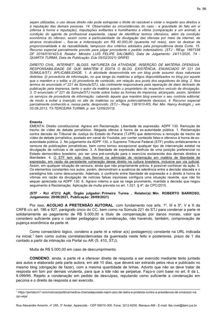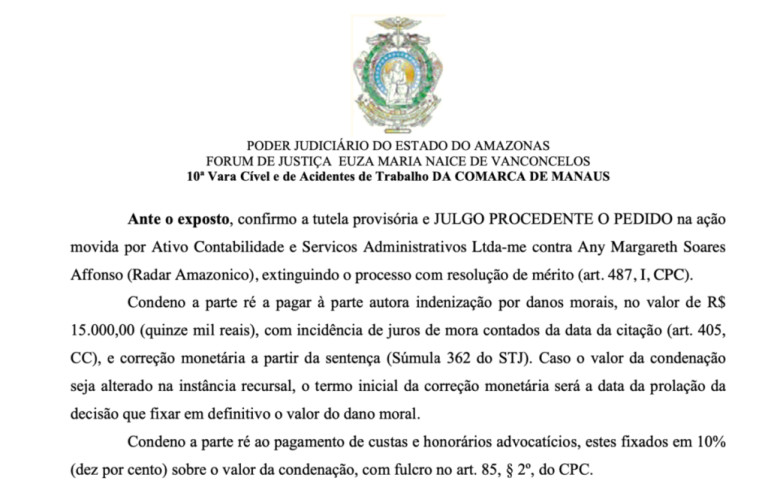 Não é a primeira vez que o blog de Any Margareth enfrenta problemas desse tipo. A Justiça do Estado do Amazonas já havia determinado anteriormente que ela pagasse uma indenização de R$ 15.000,00 (quinze mil reais) por danos morais.