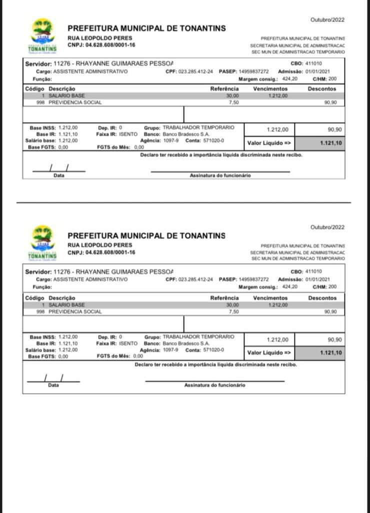 Além disso, de acordo com os documentos, tanto no interior quanto na capital, Rhayanne teria sido nomeada em janeiro de 2021, sem precisar deixar o domicílio e o trabalho em sua loja em Tonantins.