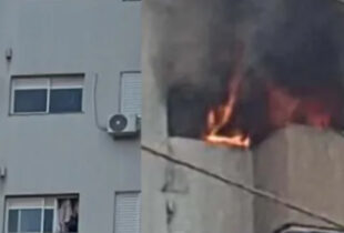 Mulher e criança ficam penduradas em ar-condicionado para escapar de incêndio em apartamento; veja vídeo