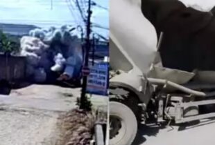 Caminhão betoneira explode e deixa moradores em pânico; veja vídeo