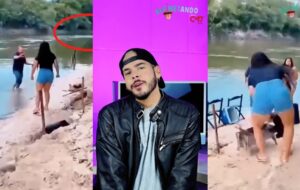 Novinha foi no chão! Fã se empolga em flutuante e seduz marmanjos dançando ‘forró de galeroso’