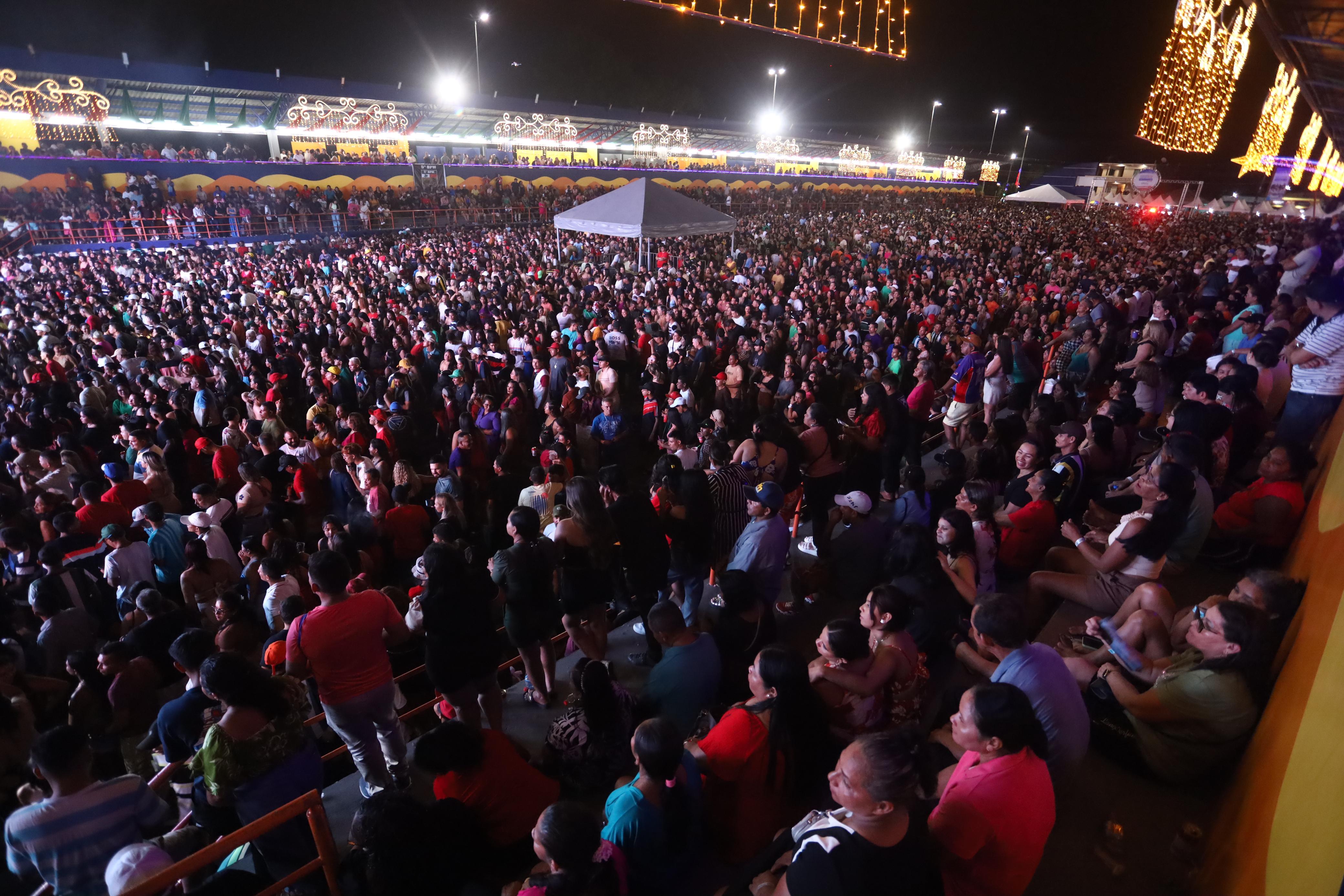 A programação musical reuniu grandes atrações. A banda Molejo foi o destaque nacional da noite, enquanto artistas regionais, como Guto Lima e o grupo Forró Ideal, garantiram diversão e diversidade musical ao público. À meia-noite, a festa ganhou um momento especial: uma queima de fogos em homenagem ao aniversário do prefeito Adail Pinheiro, acompanhada pelo tradicional parabéns.
