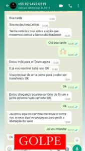 Amazonas – Criminosos têm usado a logomarca do Tribunal de Justiça do Amazonas (TJAM), a suposta assinatura da juíza Cláudia Batista e os nomes dos advogados do Escritório Guerra Pelo Consumidor em um esquema para aplicar golpes em clientes do próprio escritório jurídico. Os estelionatários entram em contato com as vítimas e dizem que elas precisam pagar um valor específico para ter acesso aos recursos que esperam receber em processos judiciais.