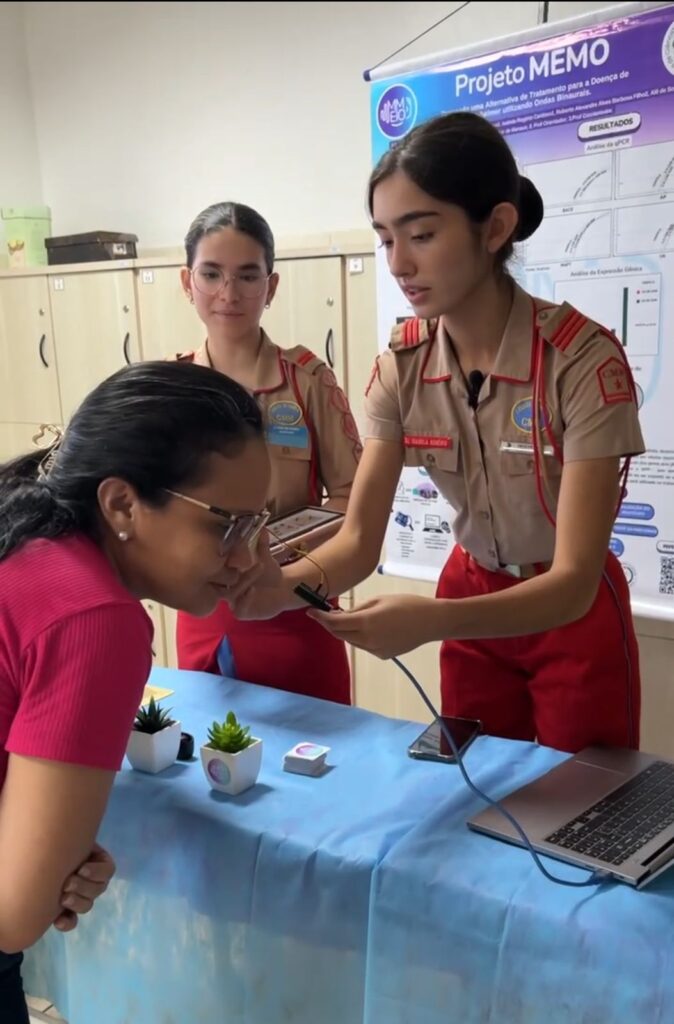Manaus – Parabéns a Ada Jamile e Isabela Rogério, duas talentosas estudantes do Colégio Militar de Manaus (CMM), que tiveram seu trabalho reconhecido com a aprovação do “Projeto MeMO” na FEBRACE 2025, um dos mais prestigiosos eventos científicos do Brasil. O projeto inovador visa tratar doenças neurodegenerativas, como Alzheimer e Parkinson, por meio de ondas binaurais.