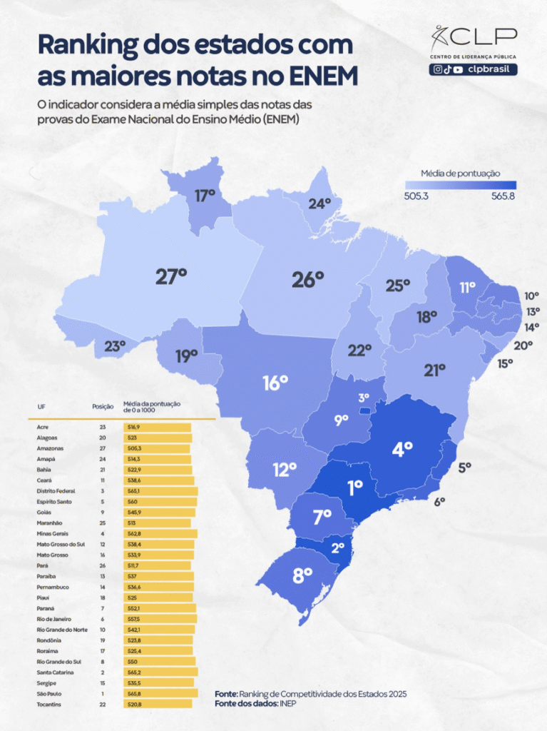 Amazonas – O Amazonas amargou a última colocação no ranking nacional das médias de notas do Enem, revelando com todas as letras o que alunos, professores e especialistas já vinham denunciando: o ensino médio no estado está em colapso absoluto. O desempenho vergonhoso não é surpresa — é o resultado direto de anos de abandono, falta de política pública e gestão ineficaz por parte do governo Wilson Lima.