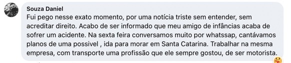 Amnon trabalhava em uma empresa de transportes e iria se mudar de estado por motivos de trabalho. Infelizmente, o acidente acabou o matando e deixando a esposa dele internada em estado grave. Nas redes sociais amigos e familiares ficaram bastante impactados com a notícia da tragédia.