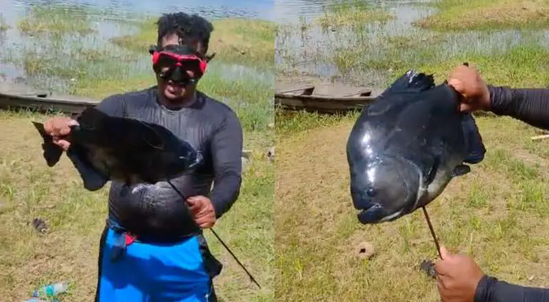 Amazonas – Um pescador capturou uma piranha-preta de porte impressionante, com cerca de 40 cm de comprimento, no domingo (15), no Lago do Miriti, balneário popular em Manacapuru, interior do Amazonas. O peixe foi retirado da água bem próximo à área de banho, onde dezenas de pessoas se refrescavam no momento.