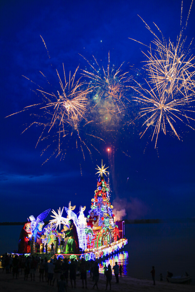 A balsa cedida pela Atem, que agora conta com 50 mil lâmpadas de Led, tem 60 metros de comprimento, 12m de largura, 26m de altura e tem na composição cenográfica árvore de Natal, trenó, Presépio e demais personagens que integram o nascimento de Jesus – os Reis Magos, Maria, José, o menino Jesus, anjos, além de animais.