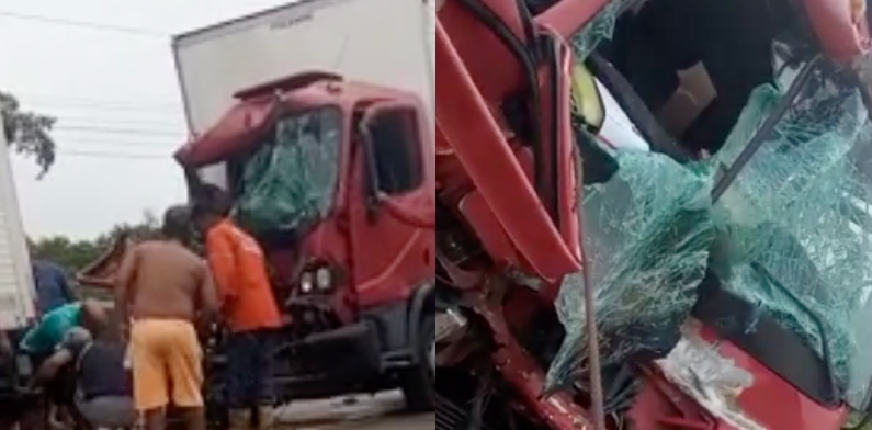 Colisão entre caminhão e micro-ônibus na AM-070 deixa duas pessoas presas às ferragens; veja vídeo