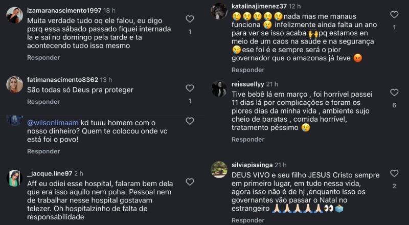 As denúncias tomaram proporção nas redes sociais, onde outras mulheres confirmaram a realidade exposta. Uma internauta disse ter sido internada no sábado e saído no domingo à tarde: “É tudo verdade. Está acontecendo tudo isso mesmo”.