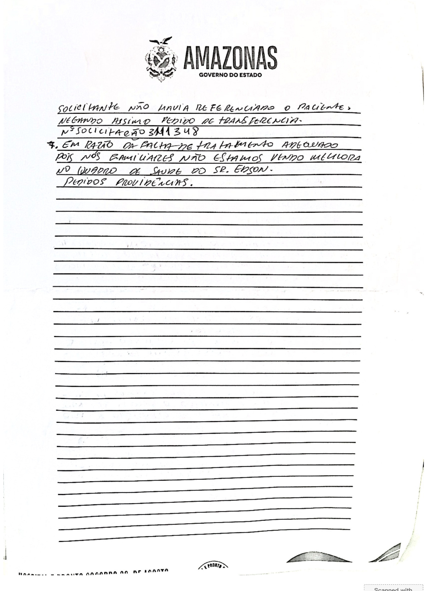O governo estadual, embora já tenha sido alvo de inúmeras denúncias, parece omisso diante da situação. A presença dos deputados estaduais na Assembleia Legislativa do Amazonas, responsáveis por lutar pelos direitos dos cidadãos, também é cada vez mais ausente, principalmente quando se trata das condições precárias enfrentadas por pacientes e seus familiares em unidades de saúde pública.