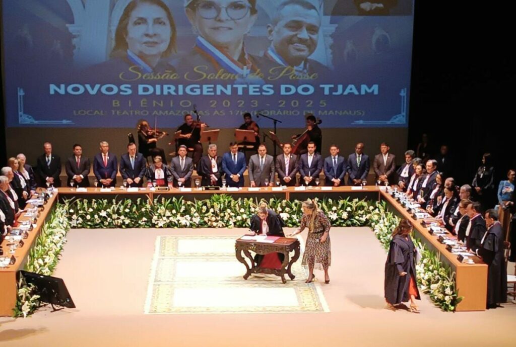 Amazonas – A desembargadora Nélia Caminha toma posse como a nova presidente do Tribunal de Justiça do Amazonas (TJ-AM) nesta segunda-feira (2). A cerimônia que acontece no Teatro Amazonas, no Centro de Manaus, está sendo conduzida pelo atual presidente da corte, o desembargador Flávio Pascarelli.
