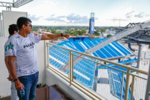 Amazonas – Neste sábado (24/06), a equipe de engenheiros fiscais da Secretaria de Estado de Infraestrutura (Seinfra) acompanhou o secretário de Cultura e Economia Criativa, Marcos Apolo Muniz, na vistoria da obra de reforma e adequação do Centro Cultural de Parintins, o Bumbódromo, que está sendo preparado para receber o 56º Festival Folclórico, a ser realizado no período de 30 de junho a 2 de julho deste ano.