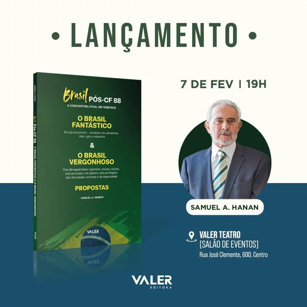 Amazonas – O ex-vice-governador do Amazonas, Samuel Hanan, lança seu mais novo livro intitulado “Brasil pós CF 88, a conjuntura atual em números”, publicado pela Editora Valer. A obra traz uma análise aprofundada sobre o cenário político, econômico e social do Brasil após a promulgação da Constituição Federal de 1988, com foco em dados que elucidam o impacto das políticas públicas nas últimas décadas.