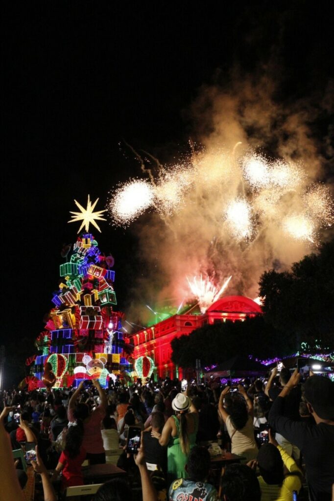 Amazonas – O governador do Amazonas, Wilson Lima, deu início, neste sábado (26/11), à programação “O mundo encantado do Natal” com inauguração da árvore de 30 metros no Largo de São Sebastião, a maior estrutura já montada em relação às edições anteriores. Em torno de 2 mil empregos diretos na área da economia criativa estão sendo criados e as atrações devem atrair público recorde.