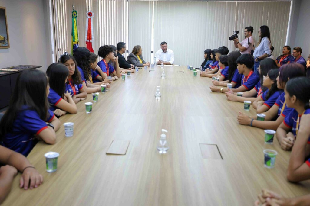 Governador Wilson Lima reforça compromisso com o esporte em visita de estudantes medalhistas no JEBs