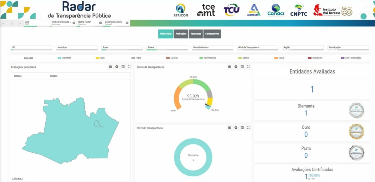 No total, na avaliação dos Poderes Executivos da esfera estadual, nove Estados alcançaram o selo diamante, considerado a marca máxima. Entre os Poderes Executivos no Amazonas, incluindo o Estado e as 62 prefeituras, o Governo do Amazonas foi o único a obter o selo diamante.