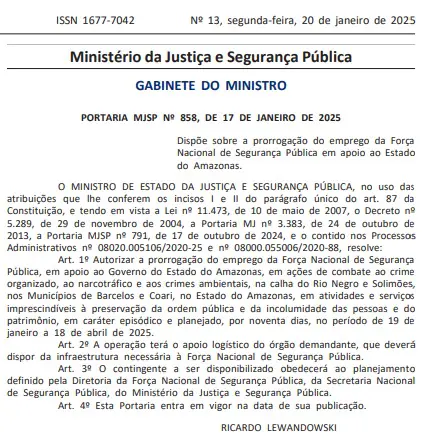 Diante do cenário, o governo federal manteve a atuação da Força Nacional de Segurança Pública em municípios do interior, como Coari e Barcelos, evidenciando a necessidade de reforço externo para conter a criminalidade onde o aparato estadual se mostra insuficiente.