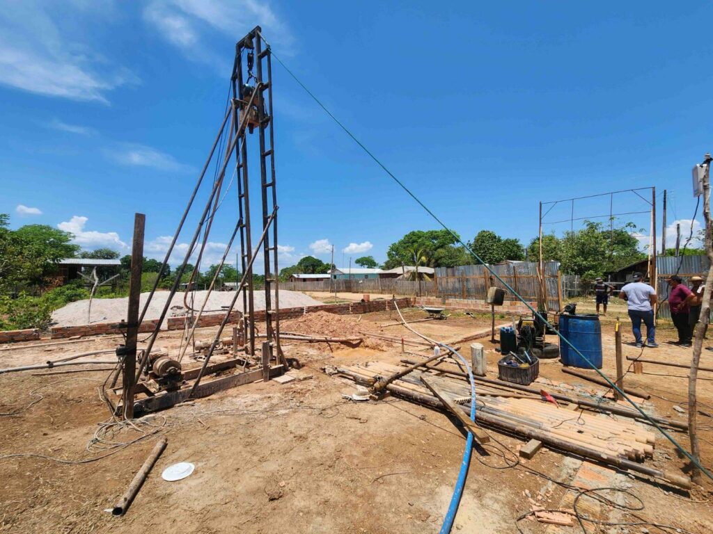 Também foi finalizado o serviço de perfuração de poço na comunidade, cujo sistema terá 3.375 metros de rede de distribuição e um chafariz com cinco torneiras para atender 130 residências.