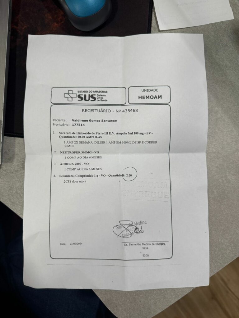 Os medicamentos em questão – Hidróxido de Ferro, Neutroffer e Addera – são fundamentais para sua saúde. Enquanto o HEMOAM, que deveria fornecê-los gratuitamente, não cumpre sua função, esses remédios podem ser encontrados em farmácias populares da cidade. No entanto, os preços estão fora do alcance de muitos pacientes que, como Dona Valdirene, dependem do sistema público para sobreviver.O caso de Dona Valdirene não é isolado. Ele expõe a falta de gestão e organização na saúde pública do Amazonas, especialmente na distribuição de medicamentos essenciais. Essa crise é agravada pela ineficiência da administração Wilson Lima, que não consegue garantir o básico para pacientes em situação de vulnerabilidade.