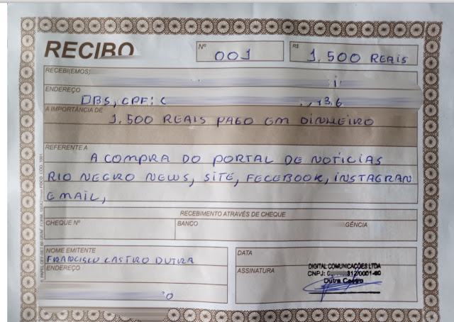 As vítimas relataram ainda que Augusto vendeu um mesmo site chamado “Portal de Notícias Rio Negro” para mais de uma pessoa. Ele ainda chegou a assinar um recibo referente a venda.