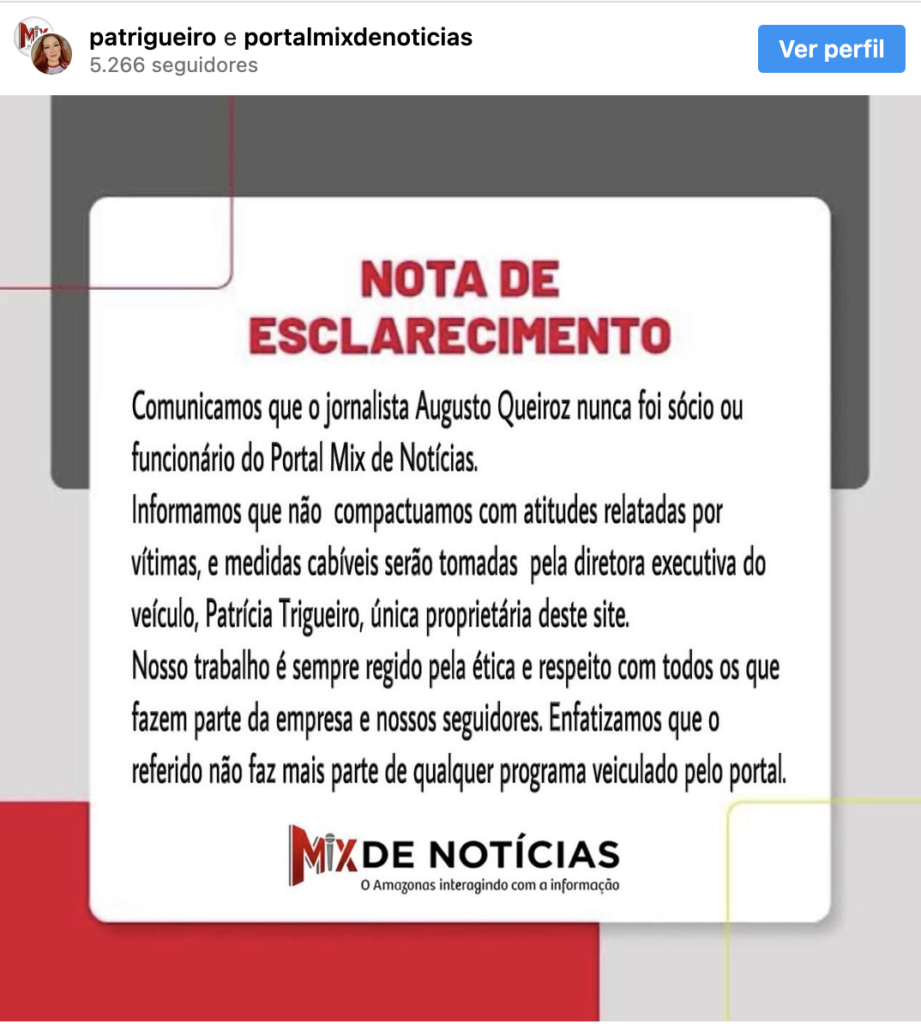 Em nota, a diretora executiva do Portal Mix de Notícias informou que medidas cabíveis sobre o caso, serão tomadas.