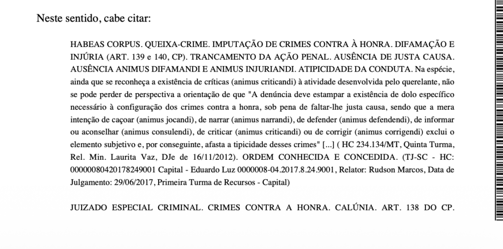 A JUSTIÇA FOI DIRETA: ERA CRÍTICA, NÃO CRIME