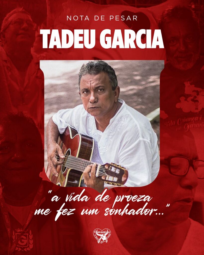 Amazonas – O compositor Tadeu Garcia, um dos nomes mais importantes da história do Boi-Bumbá Garantido, morreu neste sábado (7), aos 68 anos, em São Paulo. Conhecido como “Mestre das Evoluções”, ele foi responsável por algumas das toadas mais marcantes do Festival Folclórico de Parintins.